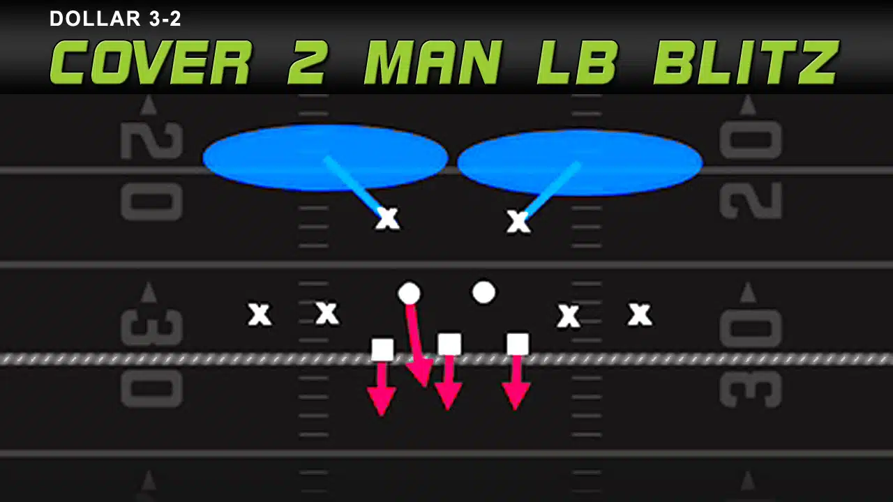 For this Madden Defensive Tips and Plays video breakdown, a Four Man Pass Rush – A Gap – Double Edge Heat blitz setup from the Dollar 3-2 – Cover 2 Man LB Blitz. We also show how we like to come out in another defense and Walk The Safeties Down In The Box Without Manually Moving Them.