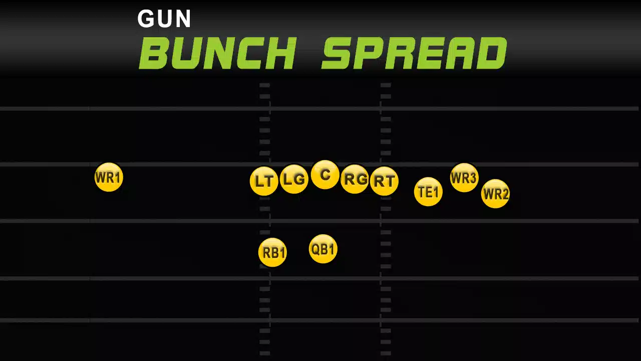 - Against Zone Coverage: Gun Bunch Spread is designed to find the gaps in zone defenses. The routes, especially the dig and corner routes, naturally settle into the open space between zones, allowing your QB to make an easy throw.