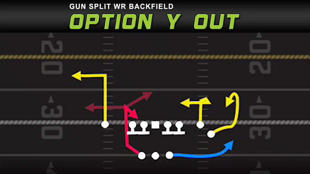 - Depending on the coverage the split end, we’ll run a curl, post, or an out route. Against man coverage, he will run the out route.