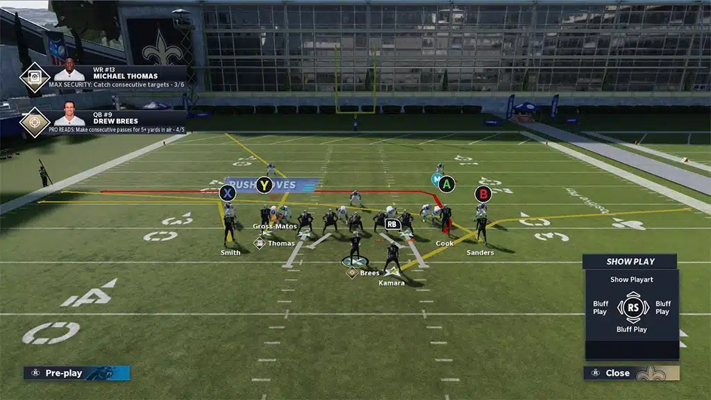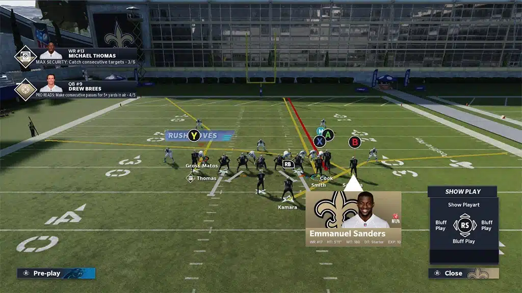 For this Madden Plays breakdown, we look at a Man Press Beater called Gun Tight Offset TE – Saints Drive Out. What we like about the Gun Tight Offset TE – Saints Drive Out is we can get all five receivers off the line of scrimmage by making just one pre-snap adjustment.