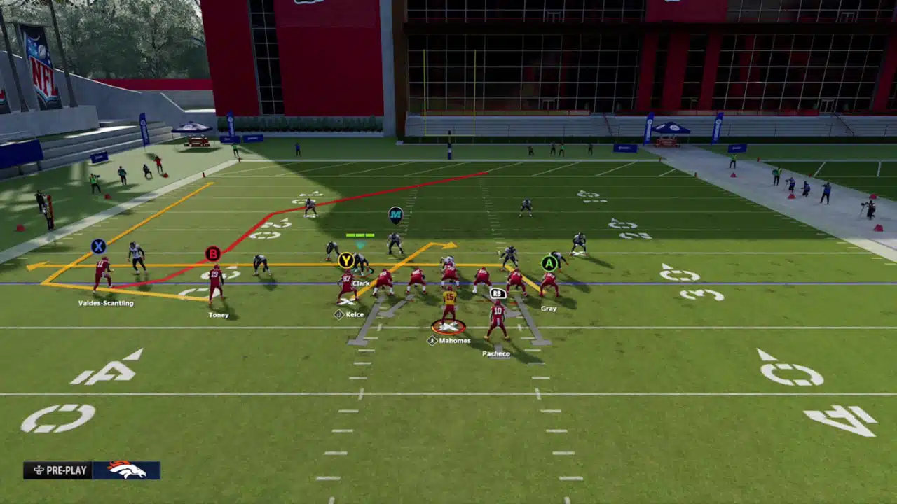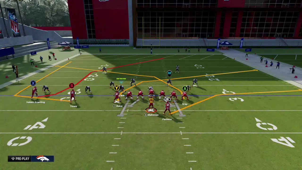 For this Madden Tips and Play breakdown, we show our #3 play that we like to run from the Chief’s Playbook to attack press man coverage is a play called Gun U Off Trips – Post Wheel Shallow. This play is really effective as it’s almost downright money. The reason we say that is that there’s one particular route that mostly gets a receiver opened consistently.