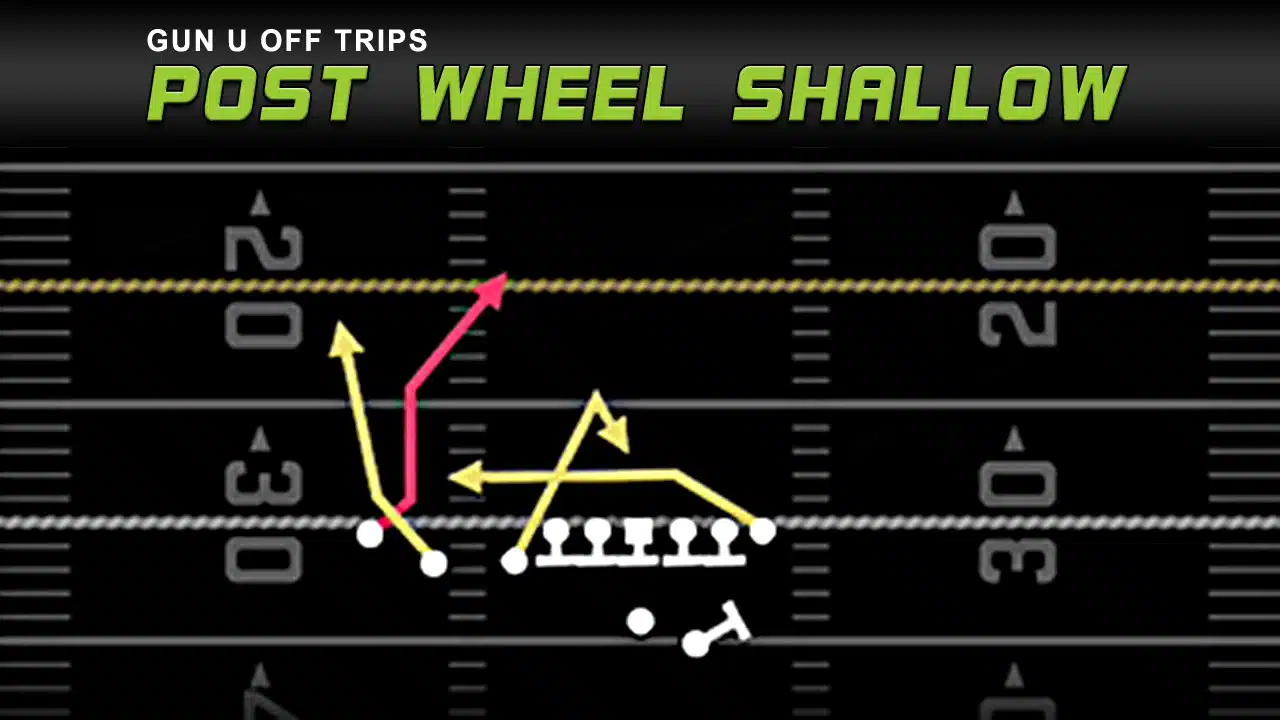 In conclusion, Gun U Off Trips – Post Wheel Shallow, is an effective play to attack press man coverage. It consistently opens a receiver vs. that type of pass coverage.