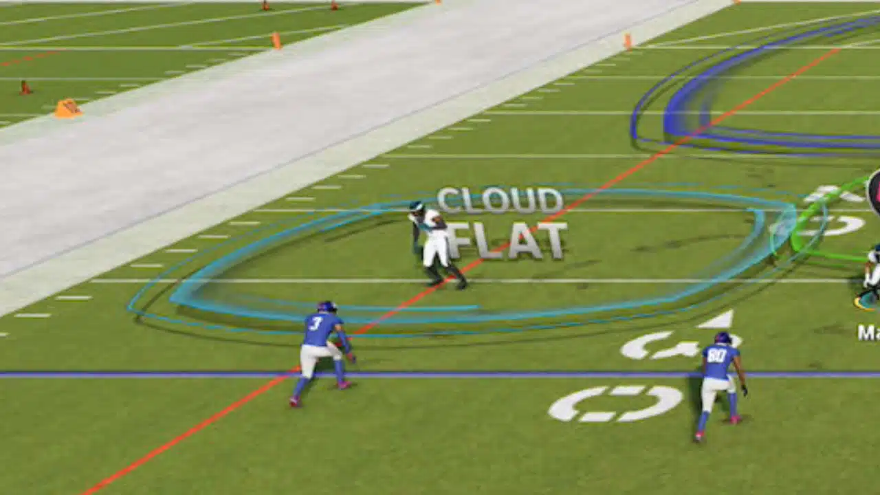 A cloud flat is a type of zone coverage in Madden that can defend both deep and short outside areas of the field. It is a common and versatile zone that can cover out routes, curl routes, and some corner routes. A cloud flat is suitable for medium yardage situations, such as on first and ten. It allows the opponent to complete quick passes to the flats, but limits their yards after the catch.