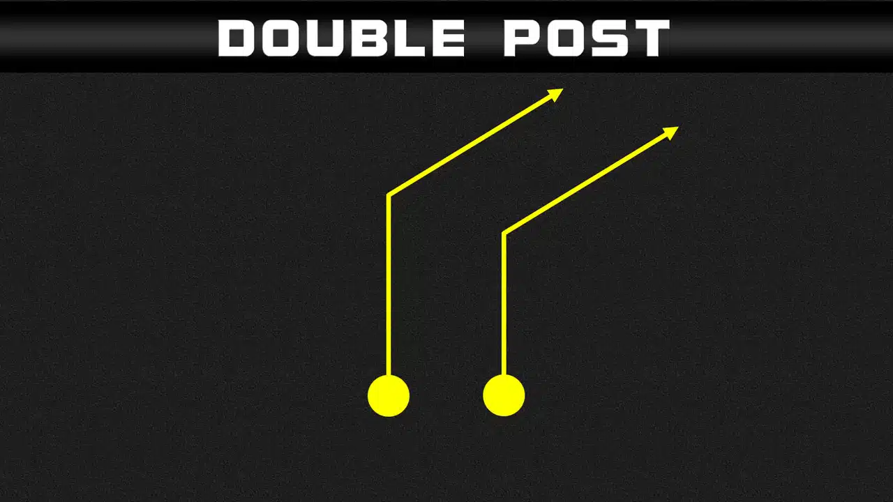 The Double Post Passing Concept features two receivers on the same side, running skinny post routes. It is one of the go-to concepts that high school, college, and pro football. The Double Post Passing Concept has the quarterback reading the same side safety as the two post routes are being run. The quarterback looks for the outside post route first. If the safety covers that, then the quarterback looks for the inside post route.