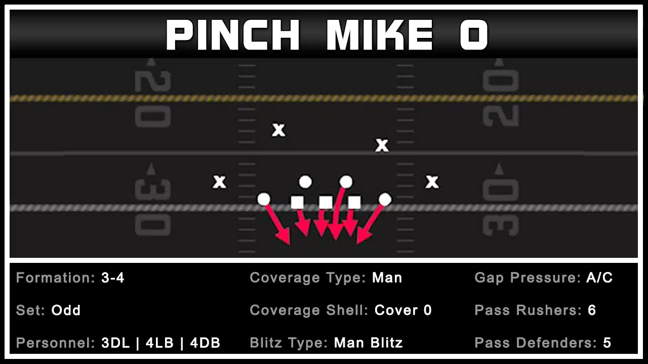 For this Madden 22 Defensive Tips and Plays video breakdown, we show Multiple Blitz Setups from the 3-4 Odd – Pinch Mike 0. We show A gap heat from the LILB. We show C Gap pressure from both the ROLB and LOLB. We show double edge pressure. We also show manual pass rush pressure from the LOLB. Finally, we wrap things up, with what subs to make, plus a few extra Madden Tips to help improve your time in the lab.