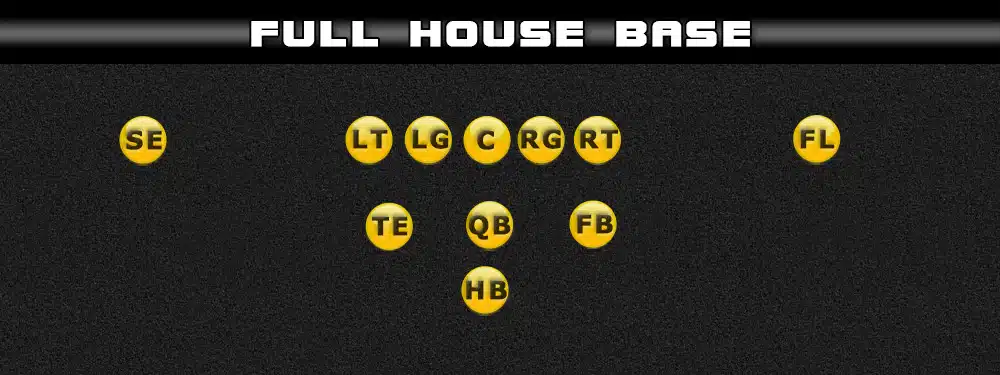 The Pistol Full House base is an offensive formation that we’ve been messing around with as of late.  The formation has several good run plays that can be ran pick up a decent amount of yardage.