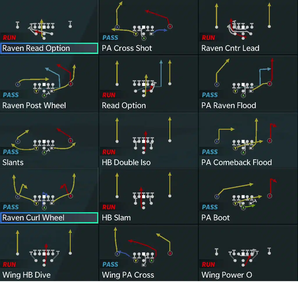 Note: play diagrams are from the Baltimore Ravens Madden 21 default playbook.