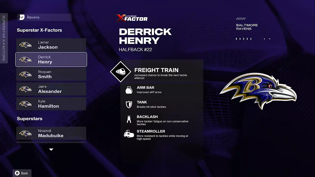 - Freight Train X-Factor: This ability is his signature. Once active, he becomes a force of nature, making it nearly impossible for defenders to bring him down with a single tackle.
